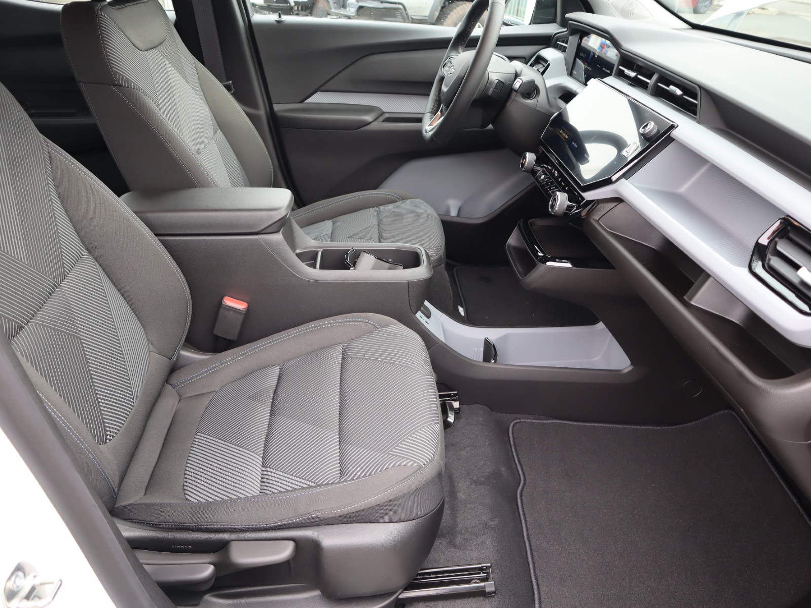 Jet Black With Blue And Grey Stitching, Cloth Seat